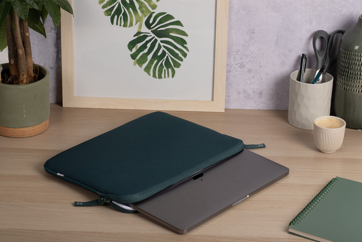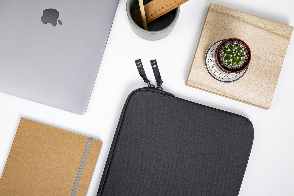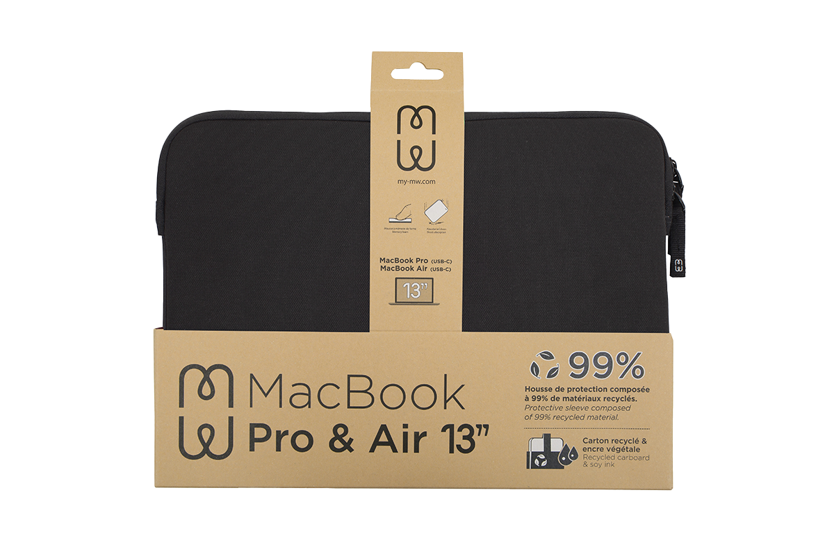 Chaque partie de la housse a été étudiée pour proposer la meilleure solution possible. Le tissu, le zipper, la plush intérieure et la mémoire de forme 6mm (tous les 4 certifiés GRS) sont donc issus de matériaux recyclés et respectueux de l’environnement. Il faut donc par exemple 12 bouteilles d’eau pour produire une housse 13’’.